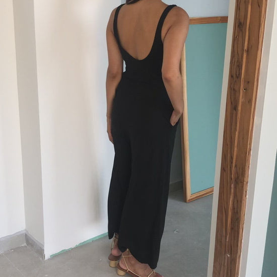We took our best-selling square neck top (with built-in bra and scoop back) and combined it with the fit of our super-flattering wide leg jumpsuit...and then added pockets! This is the perfect elevated and timeless piece for all seasons and all occasions- including lounging!