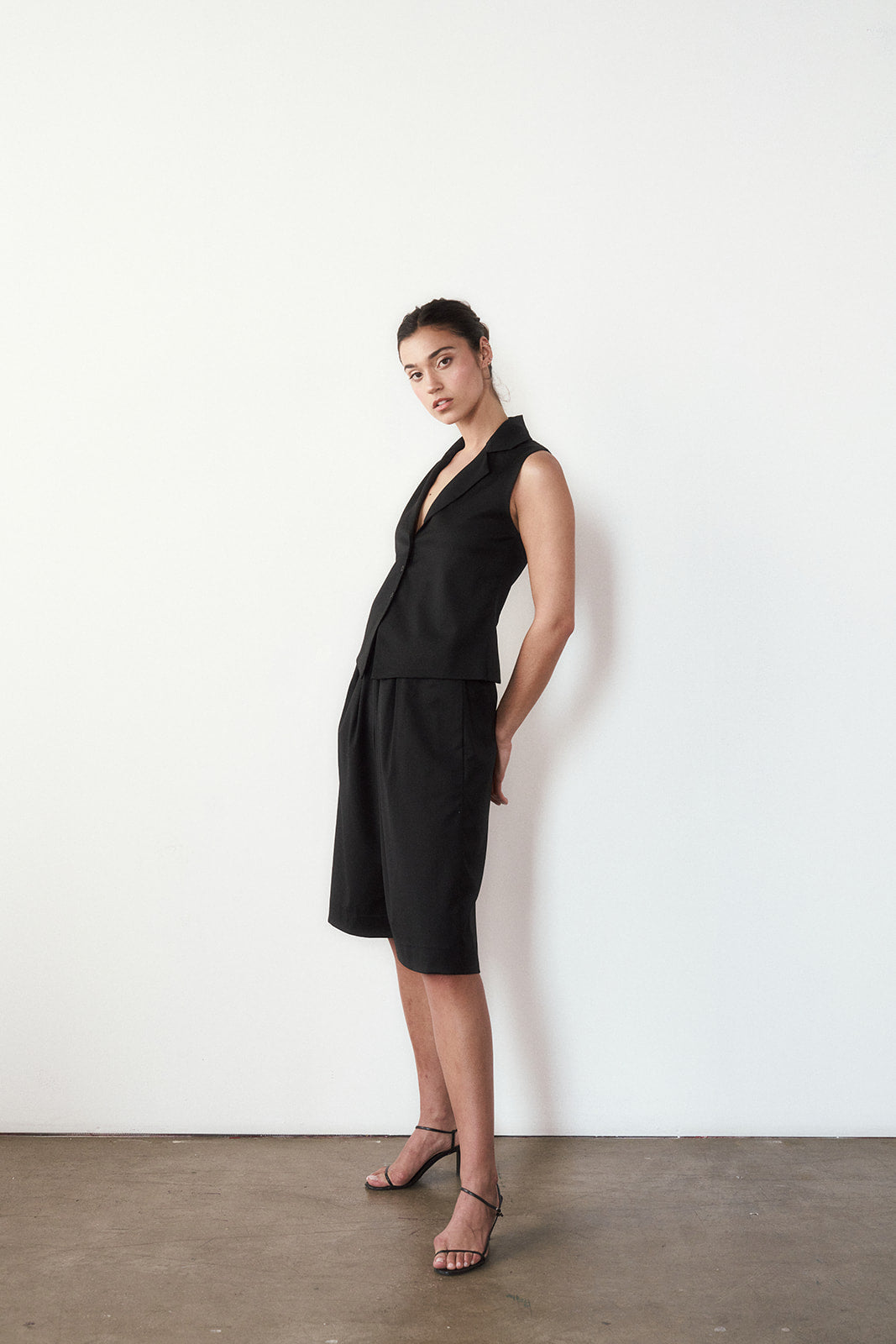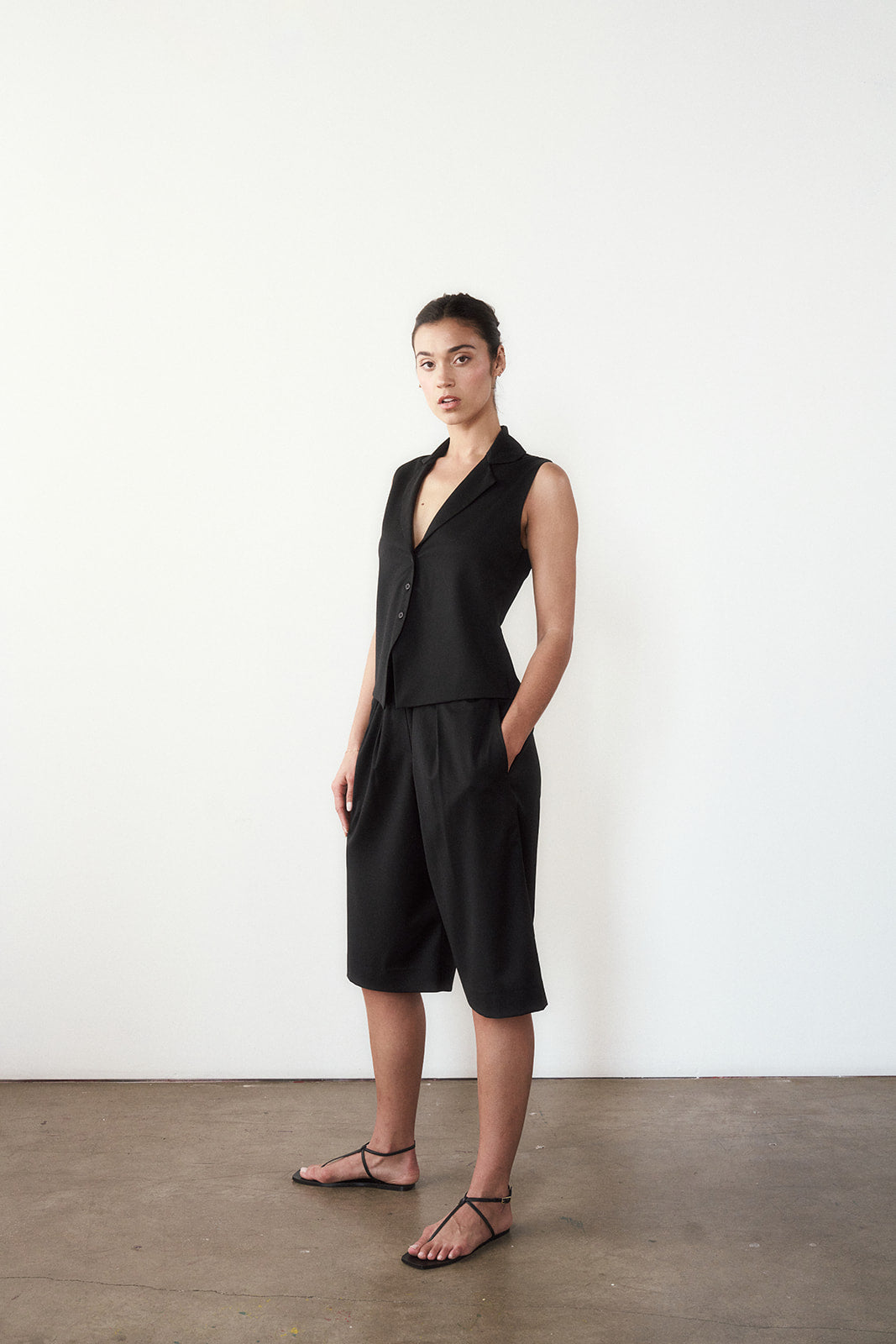 • The 100% lightweight tropical wool Bobby Shorts are the elevated yet effortless way to dress up your spring/summer style. Pair them with the matching vest, our organic cotton scoop neck tank, the Margaret Long Sleeve Top or pretty much any piece in your closet for a chic look that works for casual days to dressier nights.