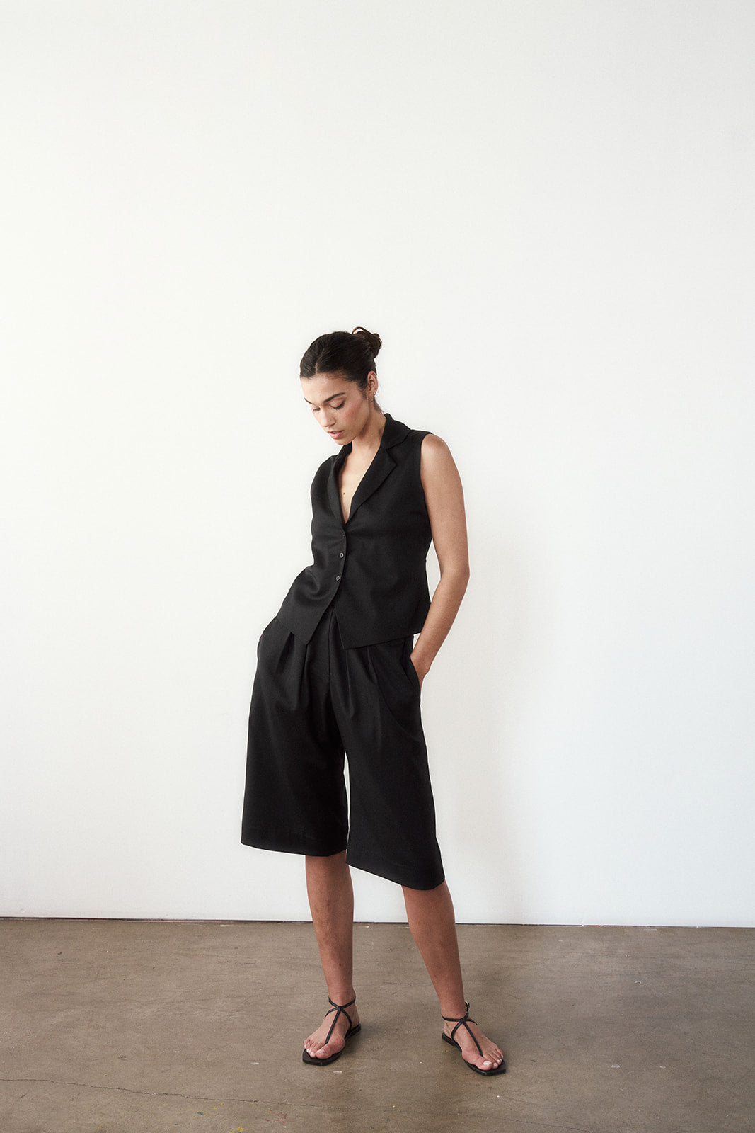 The 100% lightweight tropical wool Bobby Shorts are the elevated yet effortless way to dress up your spring/summer style. Pair them with the matching vest, our organic cotton scoop neck tank, the Margaret Long Sleeve Top or pretty much any piece in your closet for a chic look that works for casual days to dressier nights.