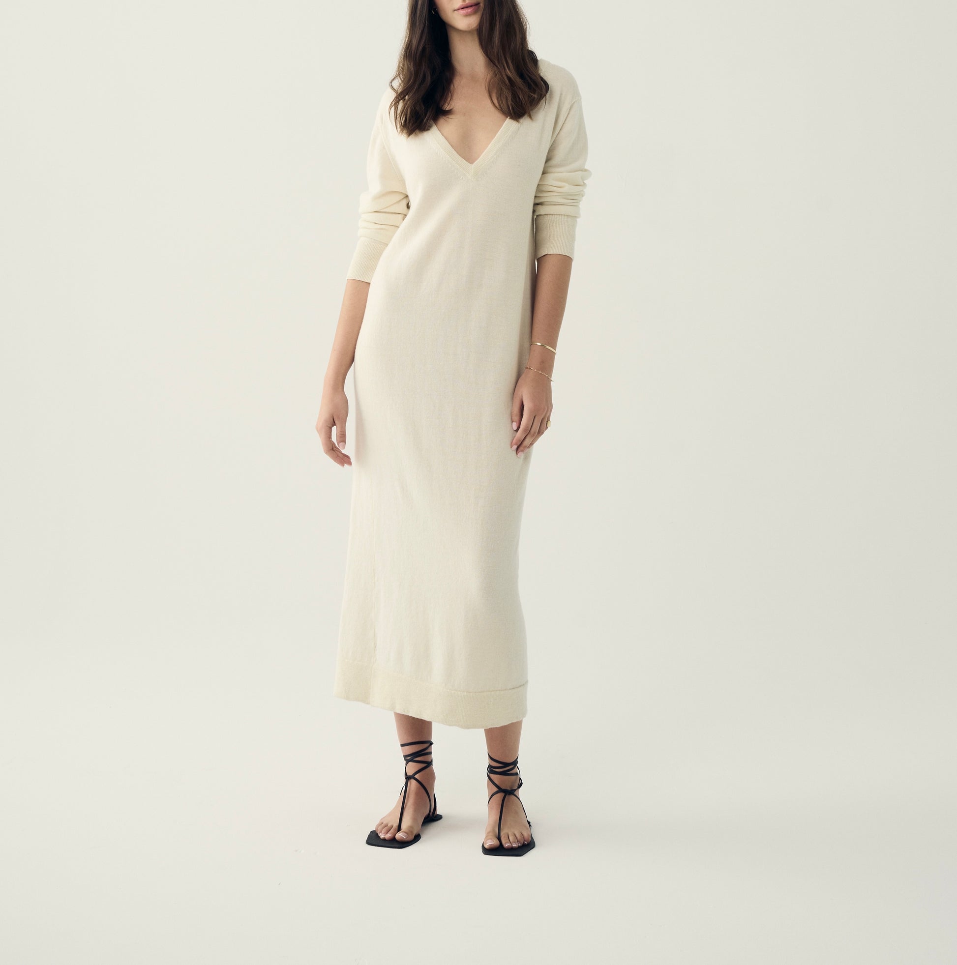 Climate beneficial yarn is made from animals grazed to enhance soil health and it’s ability to capture more carbon from the atmosphere than it emits ultimately helping to reverse the carbon imbalance causing our climate crisis. This process of grazing and farming enriches the soil allowing it to grow more nutrient dense food, hold more water, improve human health and enhance local economies. Vincent James is beyond excited to share this heirloom quality dress that will stand the test of time and trends.