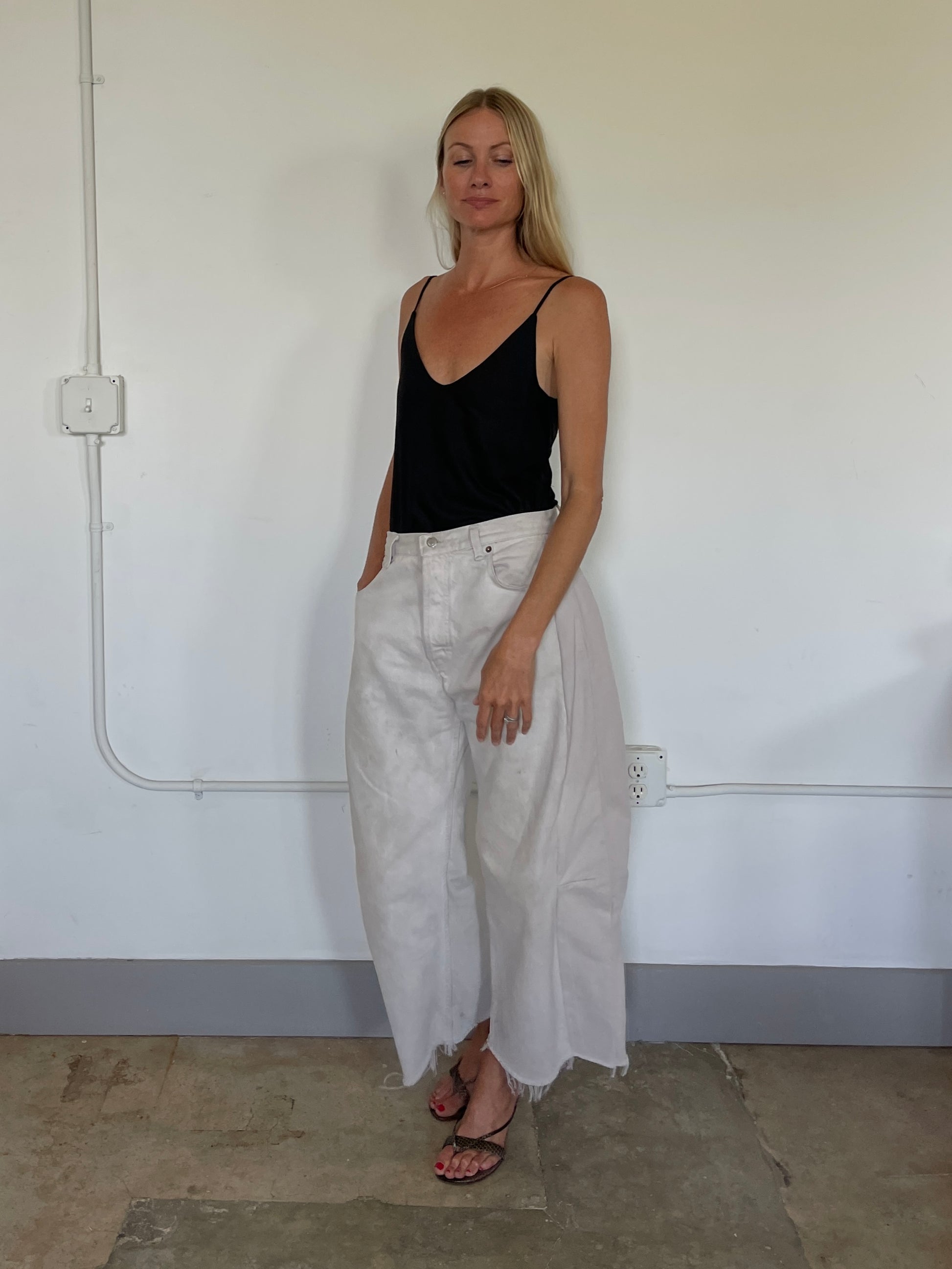 We took our fan favorite V Neck Tank and gave her a sophisticated chic upgrade! She still has the same super flattering shape + adjustable straps, but is now made in the luxe 100% super soft, lightweight + seasonless merino wool with a bit of natural stretch. The new tank is cut on the bias allowing it to skim the body but not sit quite as tight as the old version. We removed the elastic "bra" on this version but kept the double layer at the bust with the internal one having the option to add inserts. This is the tank you'll reach for for nights out with your favorite denim, layered under blazers and cardigans or paired with simple summer pants + skirts.